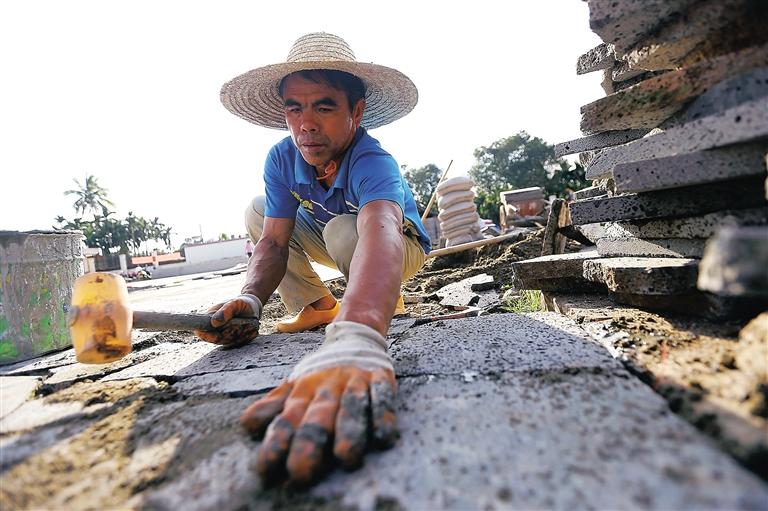 12月20日,在省“十三五”建档立卡贫困村——定安县龙门镇红花岭村,工人们正在加紧改造建设村文化广场。据了解,这个由定安县委组织部、县民政局、县扶贫办、县文体局、龙门镇政府等投资共80万元修建的文化广场,面积约2200平方米,其四周将建设卫生室、戏台、农村社区服务站等基础设施。完工后这里将成为当地村民们开会、看病及开展文体活动的场所。