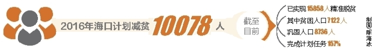 2016年海口计划减贫10078人,截至目前,已实现15858人精准脱贫,完成计划任务157%。
