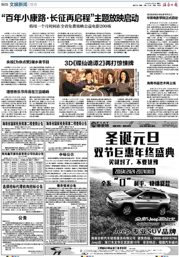 海南日报 文娱新闻综合 013 2016-12-211 2016年12月21日 星期三