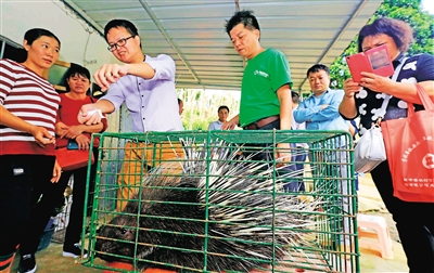 “豪猪饲养技术难点是什么”“目前市场行情、销路怎样”“豪猪饲养多久可以繁殖、出栏,饲养成本如何。”……刚到上安乡什育村委会什万章村小组万财豪猪养殖专业合作社,贫困户们就围着基地负责人林亮问个不停。