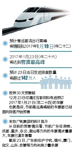 广铁集团表示,因今年春运火车票最长预售期调整为30天,学生客流与务工返乡客流高度重叠。