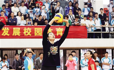 朱婷代表海中教工队和海师大女排的表演赛是本次活动的重头戏,海中体育馆座无虚席。朱婷在比赛中的每一次触球都赢得了海中球迷的尖叫声和掌声。赛后朱婷说,她知道海南的文昌是全国排球之乡,排球在海南有广泛的群众基础。她希望有机会能和中国女排的队友们来海南。