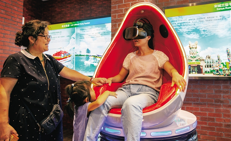 据了解,三亚市民游客中心旅游虚拟现实项目目前已经录入10个主题景观,游客可以在体验区通过VR体验设备对主题景致进行虚拟体验。由于素材是由无人机、汽车、游艇等平台搭载拍摄,游客可以身临其境般感受高科技成果带来的全新体验。本报记者 武威 摄