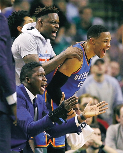 这是威少本赛季第14次三双,职业生涯第51次三双。这场比赛之前,凯尔特人已经连续230场比赛未让对手拿下三双。值得一提的是,本月12日,绿军曾终结威少连续7场获得三双的纪录。此番再度交手,换成威少终结了绿军的纪录。这是威少首次对绿军砍下三双,联盟所有球队中,只剩下5支球队还未被威少砍下过三双,分别是爵士、马刺、公牛、骑士还有黄蜂。
