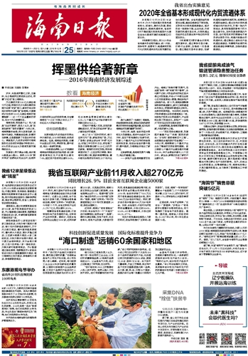 海南日报 头版 001 2016-12-251 2016年12月25日 星期日