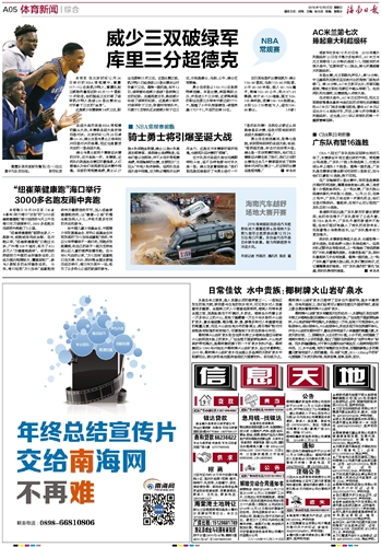海南日报 体育新闻综合 005 2016-12-251 2016年12月25日 星期日