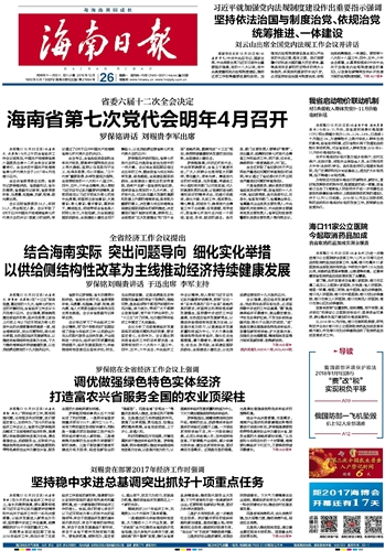 海南日报 头版 001 2016-12-261 2016年12月26日 星期一
