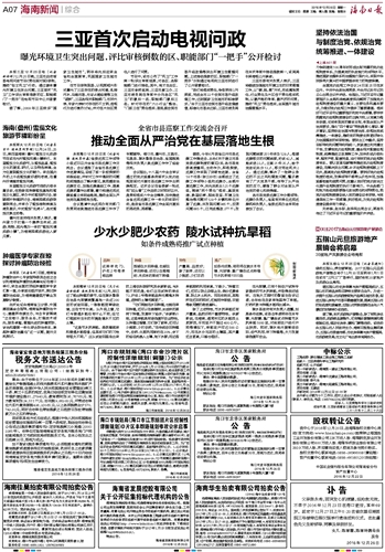 海南日报 海南新闻综合 007 2016-12-261 2016年12月26日 星期一