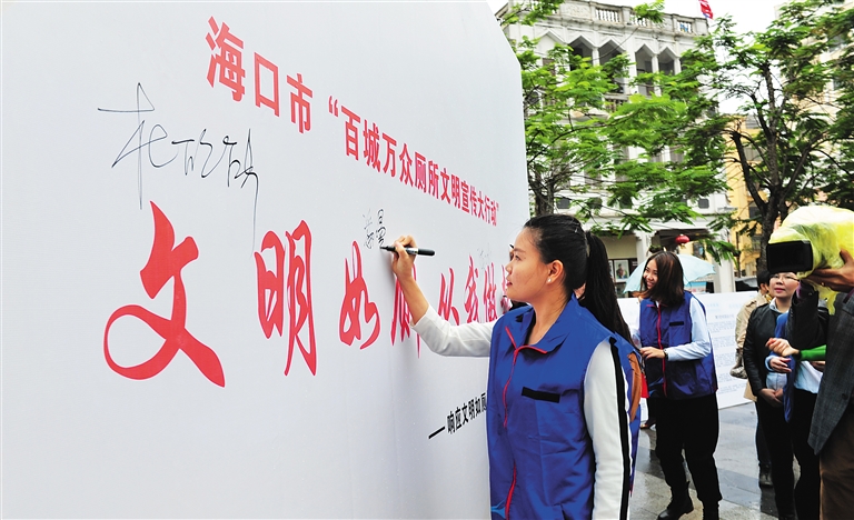 海口作为全国首批“厕所革命”先进市,积极响应国家旅游局“百城万众厕所文明宣传大行动”号召,组织开展了青少年“厕所文明”漫画展等活动,并招募厕所文明行为宣传志愿者1000多人,深入各地宣传“文明如厕、从我做起”等一系列活动。