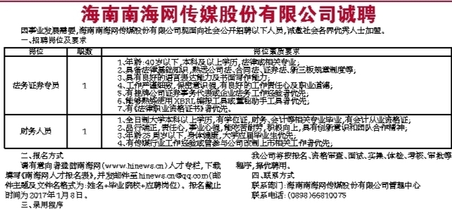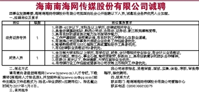 海南南海网传媒股份有限公司诚聘