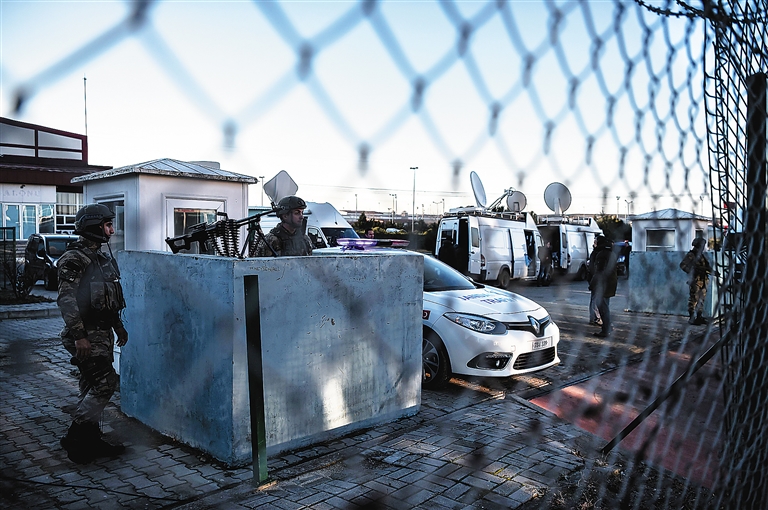12月27日,在土耳其伊斯坦布尔,特警在法院外执勤。 当日,近30名土耳其警察因涉嫌参与军事政变出庭受审。2016年7月15日,土耳其发生未遂军事政变。 新华社/法新