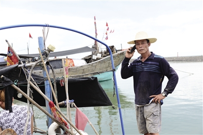 7月的一天,烈日当空,临高县抱才村的渔民杨北正在阴凉的堂屋里用4G手机上网,他的新婚妻子在贴着大红喜字的房间里玩着电脑游戏。这是北部湾边的一个渔村,居民大多以打鱼为生。从杨北的屋子走出去不到50米就是渔港,渔民们每次出海都要十几天,而今在回来休息的日子里,上网娱乐、看看iTV、了解渔汛和市场行情是他们最青睐的放松方式。