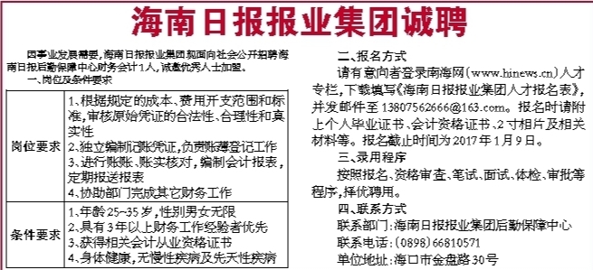 海南日报报业集团诚聘