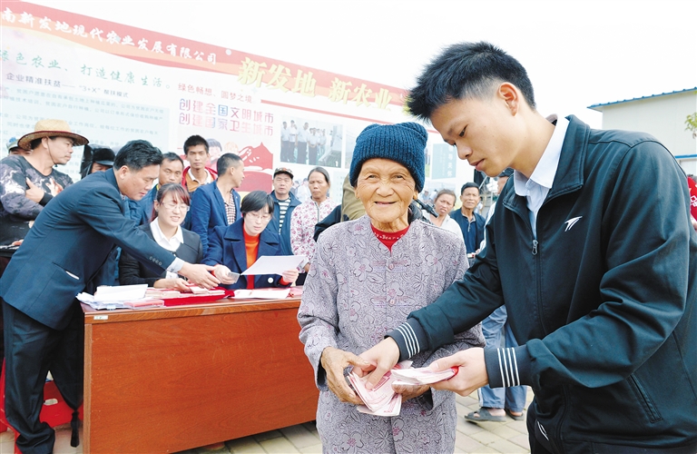 今年5月,新发地公司和龙华区政府共同制定了“3+X”帮扶方案,并于6月初发动贫困户签订了第一批扶贫入股分红协议,按农户入股1万元,取得1亩地的收益分红,公司承诺每年每亩不低于4000元的保底分红。今年受两次台风影响,蔬菜大棚受淹严重,收益未达4000元以上,但为了让贫困群众过好年,新发地公司兑现承诺,提前发放保底分红。