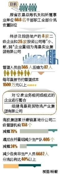 一组数据见证其中的不同:668名干部职工全部被分流安置;12家资源企业,整合组建成一家海垦商贸物流产业集团有限公司;8家二级企业和25家投资公司,重组为海垦实业集团有限公司……