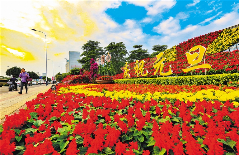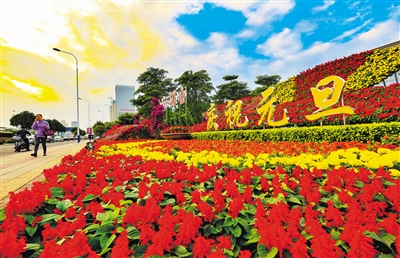 12月29日,在海口市国兴大道,鲜花装饰着路边的街景,为即将到来的元旦假期营造氛围。随着元旦的临近,海口街头喜气洋洋,节日的味道也来越浓。本报记者 陈元才 摄