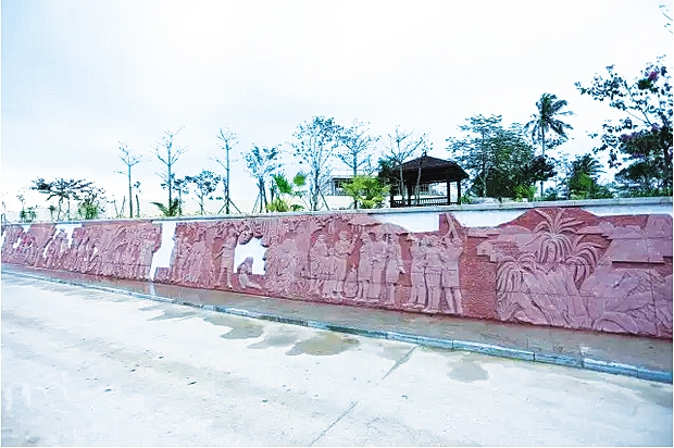 村道里近百米长的黎族文化浮雕,当你用双手抚过那斑驳的石墙,从每一个凹凸起伏的褶皱中,都能感受到黎族文明的璀璨与精彩。