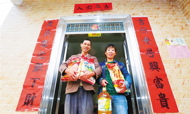 2016年12月31日,琼中黎族苗族自治县番沟村贫困户许家平、刘月珍夫妇在新居前。本报记者 陈元才 通讯员 朱德权 秦海灵 摄