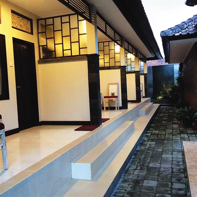 由于我们提前一天到达,第二天没有安排工作,一大早就被一阵敲门声叫醒,Home-stay的主人Wayan姐姐轻声喊道:“你们的早餐好了!”推开房门,迎着阳光,我终于看清了这个home-stay。不大的庭院,几乎一半都被一个小台子占去了,Wayan姐姐的爷爷在台子上轻轻挥动着扫把,看到我出来了,停下了手中的活,对着我微笑:“Good morning!(早上好)”伸着懒腰来到他们的客厅,其实也是一个半封闭式的小空间,座位上有个外国小哥!小哥是德国人,上周就已经来了,刚刚高中毕业,现在也正处在我之前提到的“Gap Year”阶段,他要在这里呆上半年,顺便把东南亚的几个国家都玩一遍,听得我好生羡慕。