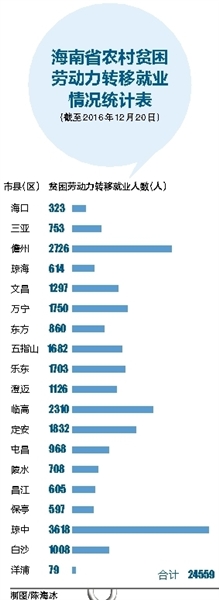 三亚、乐东、昌江等九市县建立琼南就业合作平台,通过公共就业服务网共享岗位信息,组织当地企业到其他市县开展专项招聘活动,引导琼南贫困劳动力有序外出就业。