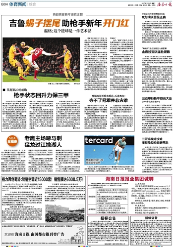 海南日报 体育新闻综合 012 2017-01-031 2017年01月03日 星期二