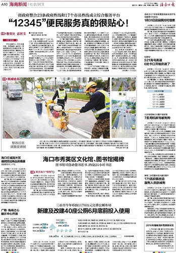 海南日报 海南新闻社会/民生 010 2017-01-041 2017年01月04日 星期三