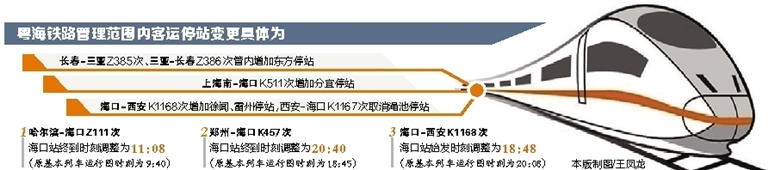 本报海口1月4日讯 (记者邵长春 通讯员李兰芳)记者从粤海铁路获悉:自2017年1月5日零时起,粤海铁路将实行新的旅客列车调整图,此次海南环岛高铁暂不调整。