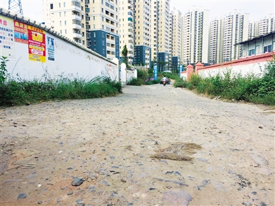面对小区住户的诉求,小区物业管理处的经理李昌锋给出了回应。李昌锋说,按照小区周围路网的规划,居民们所反映的小区北侧道路并不是规划路,真正的规划路在小区的南侧出口处。记者来到了小区南侧出口处,却看到成堆的红土,不见道路的影子。