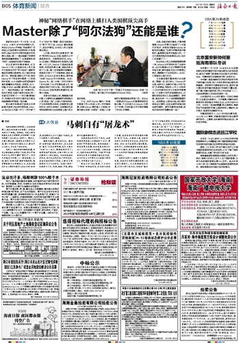 海南日报 体育新闻综合 017 2017-01-051 2017年01月05日 星期四