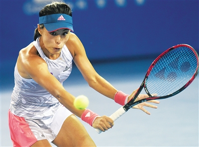 1月5日,在WTA深圳网球公开赛四分之一决赛中,中国选手王蔷以0:2不敌意大利选手吉奥尔吉,无缘半决赛。图为王蔷在比赛中回球。 新华社发