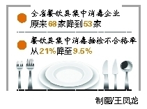 前不久,省食药监局再次对餐饮具集中消毒企业进行检查,餐饮具集中消毒抽检不合格率已降至9.5%。