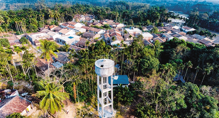 1月6日,在屯昌县南坤镇吕狗村竹根村小组,新修建的自来水塔耸立于村口。据介绍,吕狗村是贫困山村,村民常年饮水困难。去年底,当地政府为了解决该村饮水难的问题,投入50万元修建起了新的自来水塔,将干净的水引入村民家中。