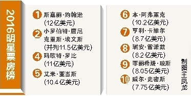 需指出的是,这份榜单几乎全由漫画改编电影主演明星霸占,包括《美国队长3》、《蝙蝠侠大战超人》和《X特遣队》,它们分别帮克里斯·埃文斯、玛歌特·罗比、本·阿弗莱克、艾米·亚当斯等明星登上了这份榜单。而刚上映的《星球大战外传:侠盗一号》女星菲丽希缇·琼斯,也成功挤进了榜单。(钟新)