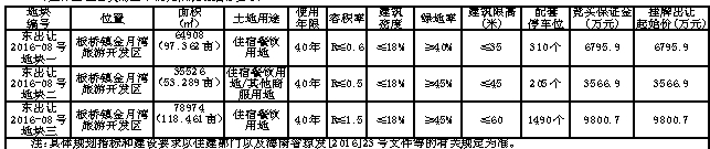 二、竞买事项。(一)中华人民共和国境内外的法人和其他组织(除法律、法规和政策性文件另有规定及经核实有闲置土地的单位外)均可参加竞买。属境外机构(含港、澳、台地区)申请参与竞买的,按照规定需提交商务主管部门核发的《外商投资企业批准证书》和工商主管部门核发的《营业执照》。本次挂牌出让地块不接受联合竞买;必须按挂牌出让公告规定的时间内把竞买保证金存入东方市国土资源局指定账户(以竞买保证金入账时间为准)。(二)本次国有建设用地使用权挂牌出让按照价高者得原则确定竞得人。(三)本次挂牌出让宗地的详细资料和具体要求(详见挂牌出让文件)。申请人可于2017年01月09日至2017年02月10日到东方市国土资源局办公楼三楼规划信息岗(或海南省政务服务中心二楼22号窗口)获取挂牌出让文件及向我局提交书面申请。交纳竞买保证金的截止时间为2017年02月10日16:00。经审核,申请人按规定交纳竞买保证金,具备申请条件的,东方市国土资源局将在2017年02月10日17:00前确认其竞买资格。(四)本次国有建设用地使用权挂牌出让活动在海南省政府会展楼二楼省公共资源交易服务中心土地交易厅进行。挂牌起始时间为:2017年01月30日8:00。挂牌截止时间为:1、东出让2016-08号地块一:2017年02月13日15:00;2、东出让2016-08号地块二:2017年02月13日15:30;3、东出让2016-08号地块三:2017年02月13日16:00。(五)挂牌时间截止时,有竞买人表示愿意继续竞价的,转入现场竞价,通过现场竞价确定竞得人。(六)本次挂牌出让不接受电话、信函、电子邮件及口头竞买申请。(七)竞买成交当天签订《成交确认书》,并在10个工作日内与我局签订《国有建设用地使用权出让合同》,竞买保证金自动转作受让地块的出让价款,余款须于出让合同签订后60日内一次付清,出让合同签订后30日内必须缴纳出让价款50%的首付款。(八)受让人取得土地使用权后,应严格按照规划要求建设。涉及水务、绿化、环保、消防、交通管理等应符合国家和海南省的有关规定。(九)成交价款不含各种税、费(耕地占用税及相关税费由竞得人按有关规定缴纳),挂牌佣金和公证费按有关规定收取。(十)其它事项:挂牌的地块以现状土地条件出让。本次挂牌出让事项如有变更,以届时变更公告为准。(十一)本公告未尽事宜详见《东方市国有建设用地使用权挂牌出让手册》,该手册所载内容为本公告的组成部分。