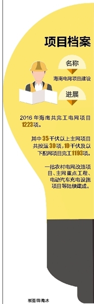 据统计,2016年海南共完工电网项目1223项,其中35千伏以上主网项目共投运30项,10千伏及以下配网项目完工1193项。累计建成35千伏及以上变电容量297万千伏安,线路872公里;建成10千伏及以下线路1895公里,安装台变1137台。一批农村电网改造项目、主网重点工程、电动汽车充电设施项目等陆续建成。