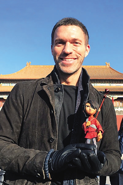 12日白天,奈特携带自己创造的片中男主人公久保玩偶首先参观了北京故宫博物院,他让久保背着一把三弦琴,在故宫各处美景前合影留念。各个关节都可以活动的久保玩偶,也在自己的“爸爸”、导演“美国王思聪”的摆弄下,摆出了不同的姿势、不同的表情,首次与中国美景完美融合,让观众围观不已。