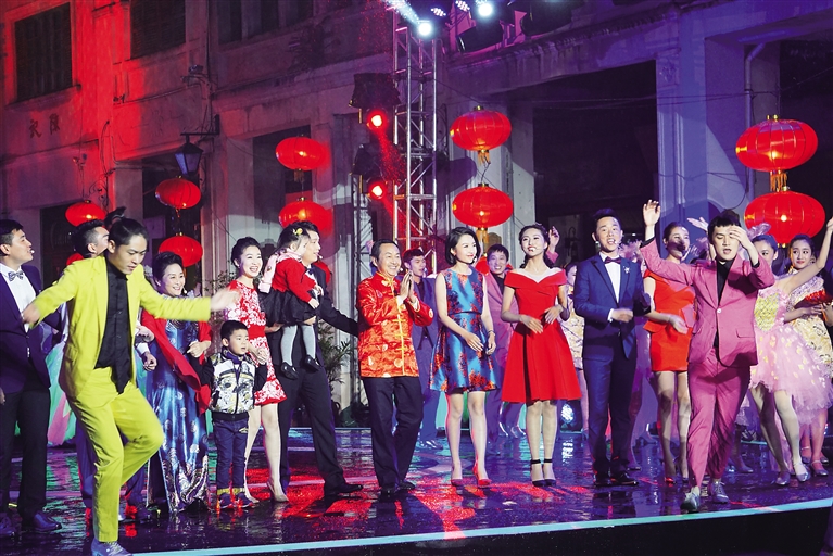 晚8时,每年一度的海口春晚准时开演。今年的海口春晚有两大创新,一是突破传统春晚文艺样式,不再以歌舞节目主打;二是突破舞台空间限制,首次将春晚演播场地搬出演播大厅,设置在露天的骑楼老街进行户外录制。节目借景而演,人物触景生情,整台春晚创新性地打造出了集声、光、影、情于一体的实景化春晚样式。