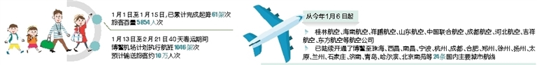 目前,博鳌机场正逐步发挥作用,缓解春运压力。按照部署,1月13日至2月21日40天春运期间,博鳌机场计划执行航班1046架次,预计输送旅客约10万人次。