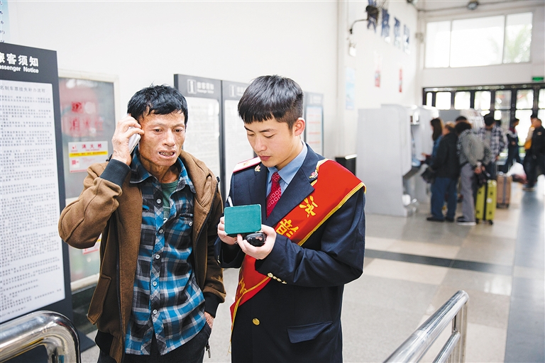春运期间,对于有特殊困难或行动不便的旅客,如老弱病残孕等重点旅客,海口火车站积极开展“海韵情·伴您行”爱心服务活动,确保他们顺利出行。本报记者 宋国强 摄