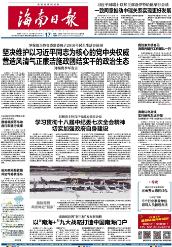 海南日报 头版 001 2017-01-171 2017年01月17日 星期二