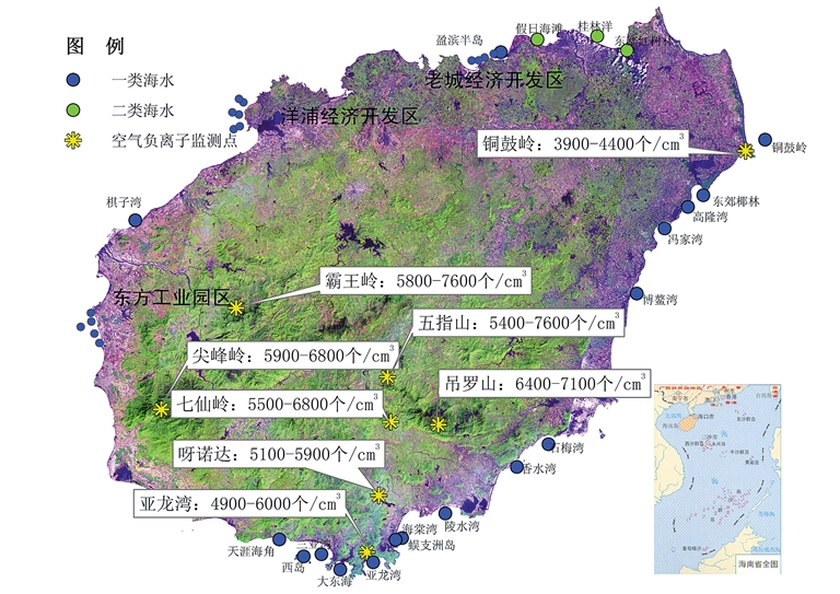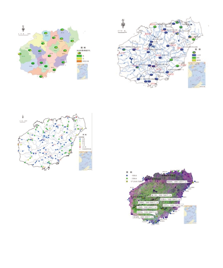 全省主要森林旅游区空气质量优良,霸王岭、尖峰岭、五指山、七仙岭、铜鼓岭、亚龙湾、吊罗山、呀诺达8个主要森林旅游区空气负离子平均浓度分别为6670个/cm3、6420个/cm3、6460个/cm3、6040个/cm3、4160个/cm3、5540个/cm3、6720个/cm3、5540个/cm3,远超世界卫生组织规定的清新空气1000个/cm3-1500个/cm3标准,对人体健康极有利。与2015年同期比较,尖峰岭和呀诺达的空气负离子浓度有所升高,其余森林旅游区空气负离子浓度无明显变化。