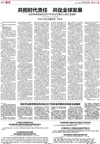 习近平出席世界经济论坛2017年年会开幕式并发表主旨演讲