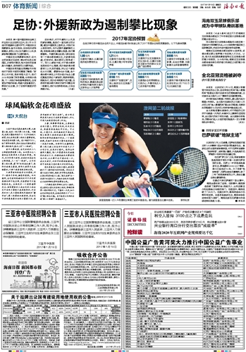 海南日报 体育新闻综合 015 2017-01-191 2017年01月19日 星期四