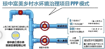 2016年初,我省首个全县域农村生活污水处理捆绑政府和社会资本合作(PPP模式)项目正式落地琼中黎族苗族自治县。项目通过模式创新,探索解决农村污水处理项目资金缺乏、收益率低以及可持续等问题。