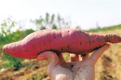 日前,海头镇红坎村海头地瓜喜迎丰收。其中收成较高的品种为高系14号日本品种。海南绿翠生态环境股份有限公司负责人张长辉介绍,高系14号原产日本,又称“板栗薯”,近年来引入我国,该品种薯皮红色,薯肉白色微黄,薯块大小均匀,蒸熟后有板栗的香味。该品种是红薯中营养价值比较高的一个品种,含有丰富的糖质、维生素和矿物质、食物纤维等。