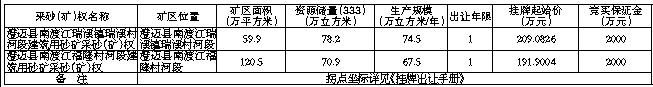 四、竞买咨询及竞买申请时间:1、有意竞买者可到澄迈县水务局查询和获取《澄迈县两宗建筑用砂矿采砂(矿)权挂牌出让手册》,并按该手册的具体要求申请参加竞买;2、竞买申请时间:2017年1月23日上午8:30至2017年2月21日下午17:00。交纳竞买保证金的截止时间为2017年2月21日下午17:00时(北京时间)。