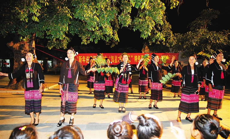 在农历鸡年来临之际,玉龙村的黎族同胞和外来的黎族民间音乐人,以富有民族特色和乡土气息的一台歌舞晚会,提前为村民们欢庆新春。