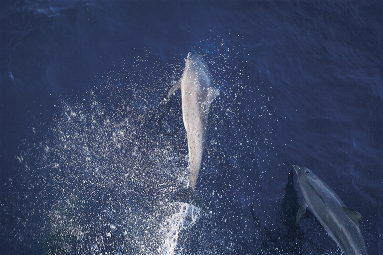 海豚属哺乳纲、鲸目、齿鲸亚目,海豚科,通称海豚,共有近62种,分布于世界各大洋。海豚体长1.2—4.2米,体重23—225千克。海豚一般嘴尖,上下颌各有约101颗尖细的牙齿,主要以小鱼、乌贼、虾、蟹为食。海豚喜欢过集体生活,少则几头,多则几百头。海豚有着看起来友善的形态和爱嬉闹性格,一向受人欢迎。