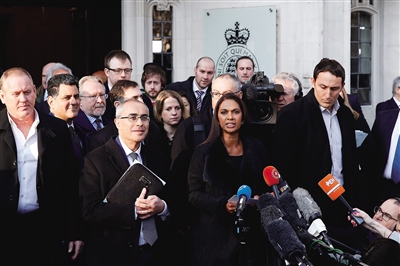 1月24日,在英国伦敦,投资基金经理吉娜·米勒在英国最高法院外接受采访。“脱欧”程序案由支持“留欧”的投资基金经理吉娜·米勒等人向英国高等法院提起诉讼。 英国最高法院24日就“脱欧”程序案作出终审宣判,裁决政府在启动“脱欧”程序前需经英国议会批准。这意味着,议会将在英国“脱欧”进程中掌握主导权。