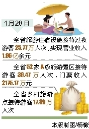 全省各市县和景区相继举办丰富多彩的文化娱乐活动,吸引了广大中外游客。中国雷琼世界地质公园海口园区组织“金鸡祈福”、最炫民族风文艺演出、群众有奖游园等活动,景区游人如织,井然有序;海口冯小刚电影公社人气爆棚,庙会市集、变装巡游、年味美食活动丰富多彩;海南野生动植物园长颈鹿、狮虎狮兽受到小朋友的宠爱;假日海滩、万绿园、白沙门公园等公共景区游客如织。三亚景区、酒店迎来客流高峰的同时,“双修”成果也受到广大市民和游客的青睐,在红树林生态公园、市民公园、东岸湿地公园处处可以看到游客们的身影。琼海市乡村游、草莓采摘体验游、白石岭“军坡情”演出、龙寿洋观花海等特色旅游产品广受青睐。定安南丽湖樱花文化节迎来春节假日第一个游客小高峰。